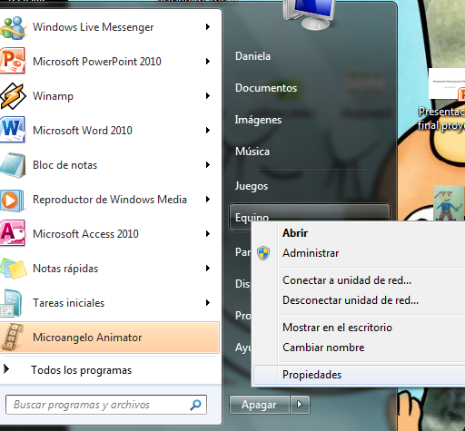Paso 1: Necesitamos añadir Python a nuestro PATH. Lo primero que haremos es ir a Inicio, y en donde dice "Equipo" damos clic derecho y seleccionamos "Propiedades"